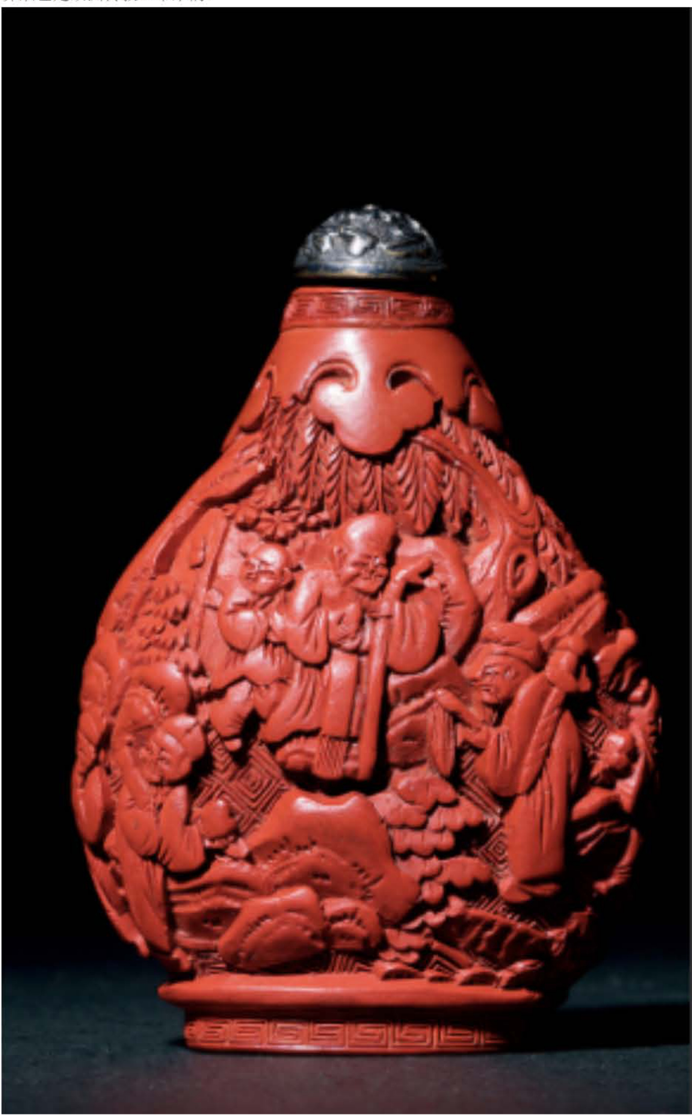 清朝乾隆皇帝年间的赐胎剔红八仙祝寿图鼻烟壶