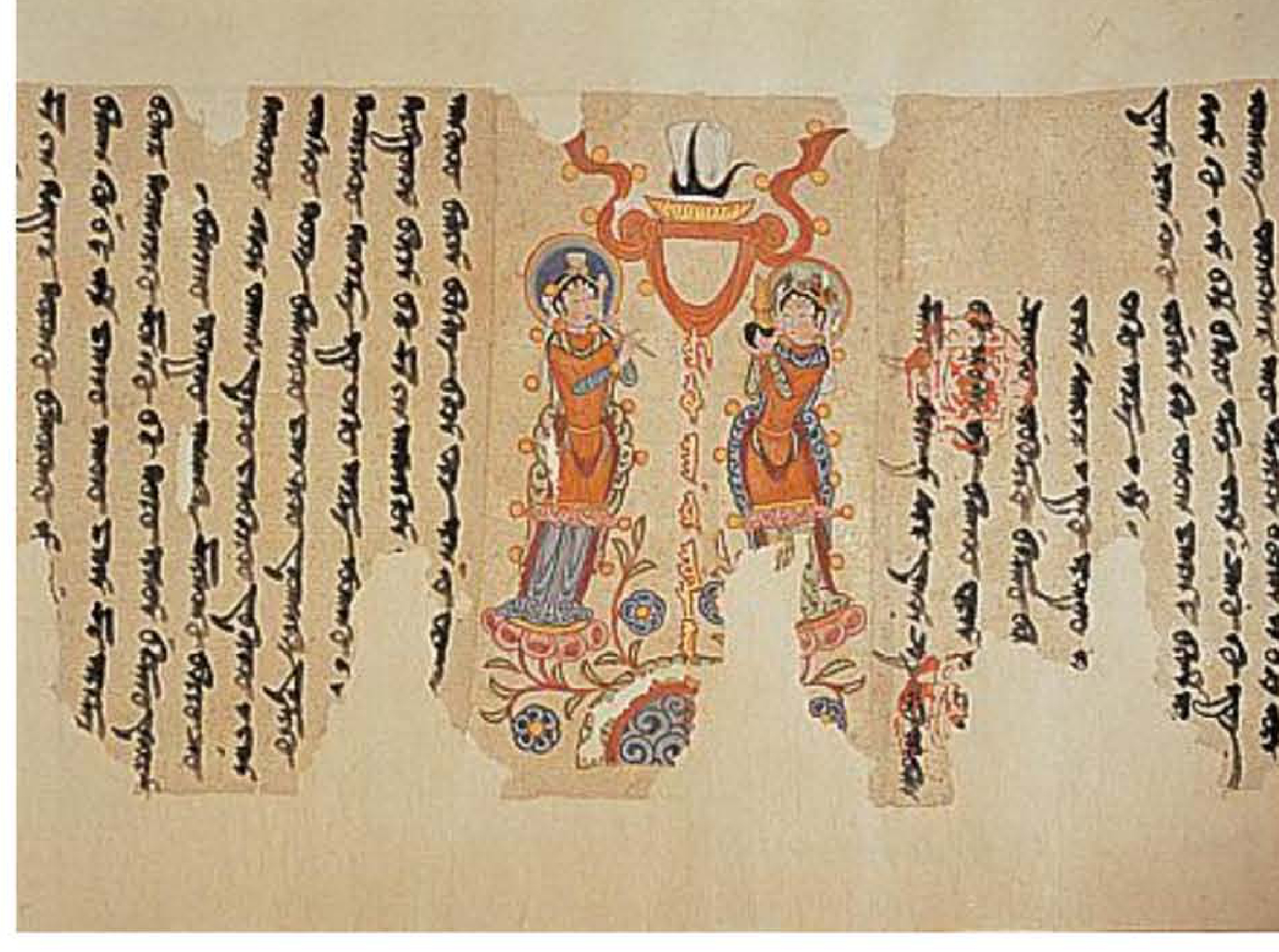 栗特人的商业头脑特别好。他们仗着地理位置好,在丝绸之路上忙着到处做生意,东到中国,南到印度,西到波斯,东北到蒙古。这前三个,中国、印度和波斯,文字都相当发达;至于东北那头,活跃在中亚到漠北大草原上的游牧集团,比如突厥,以及曾经是突厥的属部,后来取代突厥的,迟迟还没有文字。在频繁的接触中,其他游牧民族积极向栗特人取经,在粟特文的基础上创造了属于自己的突厥文和回鹘文。