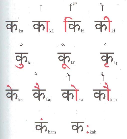婆罗米系文字不像拉丁字母,拉丁字母把辅音和元音全都写出来;也不像阿拉伯字母,只写辅音、不写元音;而是采取一种折中的办法:婆罗米系字母的辅音用字母表示,元音没有独立的字母,而是在辅音字母的上下左右添加符号来表示。在梵语里,如果元音是a,就连符号也不需要,a这个元音不需要写出来。这种写法跟古印度语言的发音有关,因为它的a的发音特别多。比如印度两大史诗,一部是《摩诃婆罗多》,用梵语念就是Mahabharata;另一部《罗摩衍那》,用梵语念是Ramayana,那么多a,写的时候干脆省去也不影响理解,所以用这种写法书写就很方便。