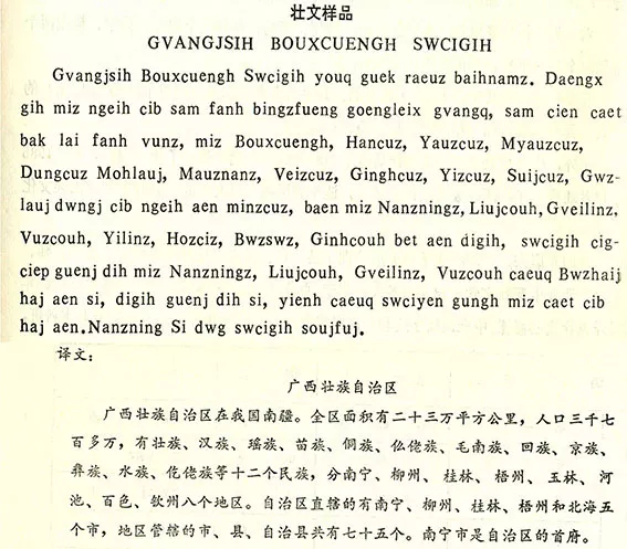 没错,蒙古文、维吾尔文和藏文经历的,可以说是古典文明时期的文字传播方式,走的是最传统的陆路,地理上有联系,才形成相互之间的交流。相比之下,壮文的情况就大不相同了,那是大航海时代以后,新时代的传播方式,很大程度上已经能突破地理限制了。壮文也比蒙古文、维吾尔文和藏文年轻得多,年轻到什么程度呢?它是1955年才创制出来,1982年才修改定型。