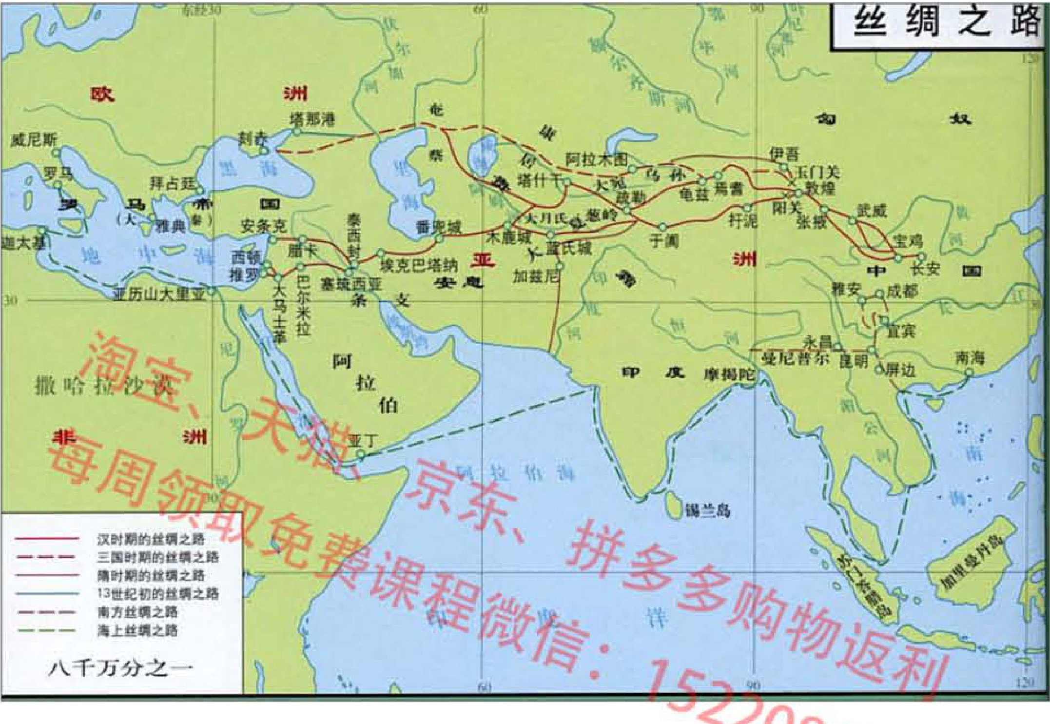 丝绸之路地图,从中我们可以清晰地看到大夏的首都蓝氏城